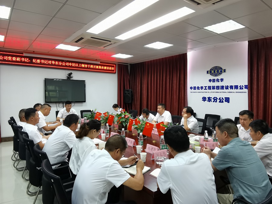 7月12日,公司黨委副書(shū)記、紀(jì)委書(shū)記對(duì)華東分公司中層以上領(lǐng)導(dǎo)干部開(kāi)展集體廉潔談話。巡察組全體人員、分公司中層以上領(lǐng)導(dǎo)干部共17人參加會(huì)議。公司黨委副書(shū)記、紀(jì)委書(shū)記張勇主持會(huì)議并講話。