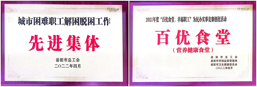 4月8日,岳陽市總工會召開2022年度工作會議,公司工會榮獲“2021年度先進(jìn)單位”“城市困難職工解困脫困工作先進(jìn)單位”,公司四化大廈食堂獲“湖南省級提名獎”“岳陽市百優(yōu)食堂(營養(yǎng)健康食堂)”,在會上予以表彰獎勵。
