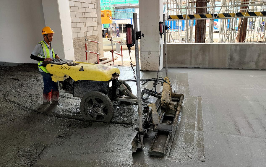 據(jù)了解,國家規(guī)定現(xiàn)澆混凝土構件成型后表面平整度偏差應為8mm, 惠州科萊恩項目業(yè)主為保證生產(chǎn)過程中專用車輛設備的穩(wěn)定性,要求生產(chǎn)車間內(nèi)現(xiàn)澆混凝土地面平整度不得超過5mm,而傳統(tǒng)方法施工的平整度達不到國家規(guī)范要求。為此,科萊恩項目黨小組以公司“質量月”活動為契機,將“黨建+運營管理”作為黨建融入項目中心工作的突破口,把“解決地面平整度、提高施工精準度”列為問題導向,提交黨小組會進行議題討論,同時邀請業(yè)主代表、現(xiàn)場監(jiān)理參與研討,充分調動各方資源,努力破解項目瓶頸,助力施工生產(chǎn)提質增效。最終在項目黨小組長尋飛躍的積極建議下,業(yè)主代表及監(jiān)理同意引入混凝土激光整平設備進行生產(chǎn)車間內(nèi)地面施工,但對地面平整度要求必須符合項目施工規(guī)范。