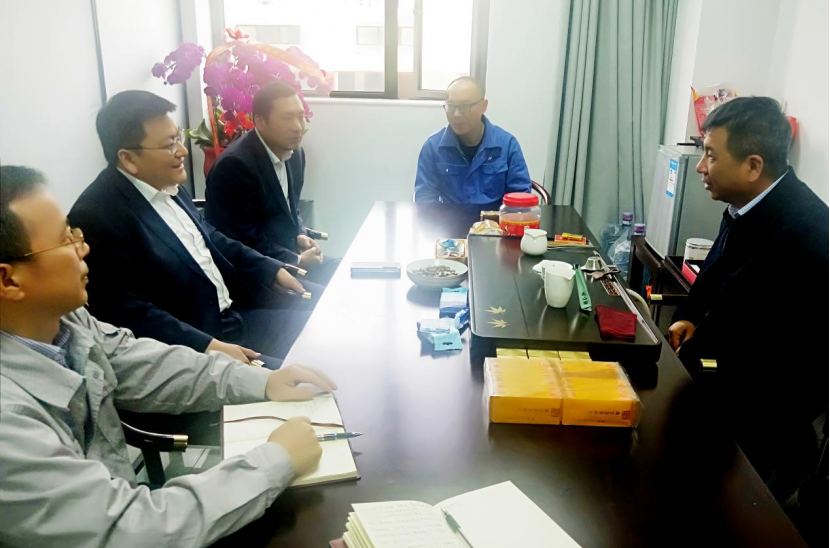 (圖為趙亮一行拜訪福建海泉化學(xué)有限公司董事長何積庚)