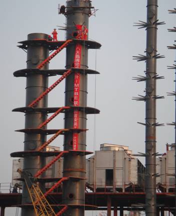 2009年8月26日下午8時許,四川大英縣盛馬化工股份有限公司1.5萬噸/年MTBE聯(lián)合裝置施工現(xiàn)場一片歡呼。由公司安裝制造分公司四川項目部承建的氣分-MTBE聯(lián)合裝置6臺主要塔器設備順利吊裝就位,為聯(lián)合裝置安裝工程奠定了完美的開端。