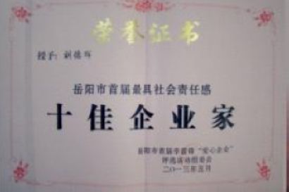 7月25日,岳陽市召開首屆學雷鋒“愛心100”企業(yè)暨最具社會責任感“雙十佳”表彰大會。會上,公司榮獲岳陽市首屆學雷鋒“愛心100”企業(yè)、岳陽市首屆最具社會責任感十佳企業(yè)提名獎榮譽稱號,公司黨委書記、董事長劉德輝獲“岳陽市首屆最具社會責任感十佳企業(yè)家”榮譽稱號。公司黨委副書記何玉文到會并參加了授獎儀式。